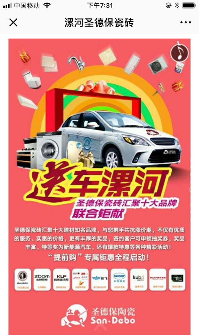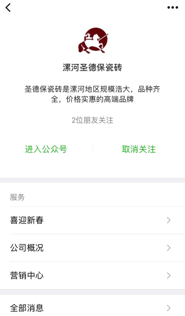 (漯河圣德保陶瓷營銷中心微信公眾號界面)